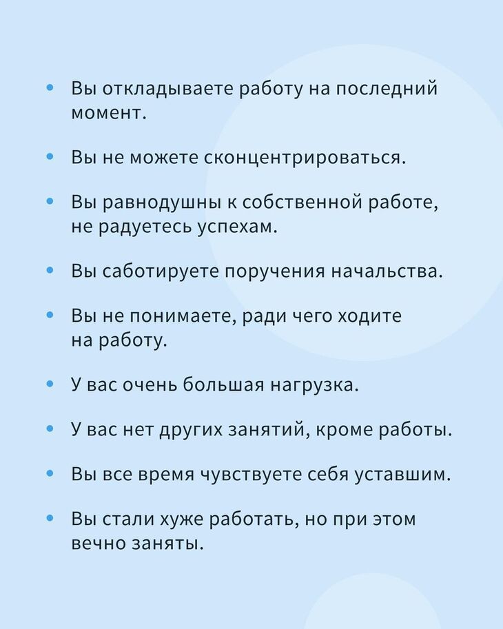 Выгорание. Чек-лист.